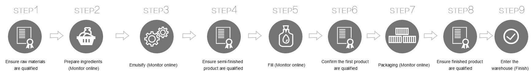 Facemetics is the first to set up the Automatic Control Display System with the process of ingredients preparation, emulsion, filling and packaging. Every step of the production can be clearly visible in Central Control Room, which makes sure the accuracy of ingredients preparation, emulsion, filling and packaging, and vigorously ensures that the quality of each product must comply with the quality standard.